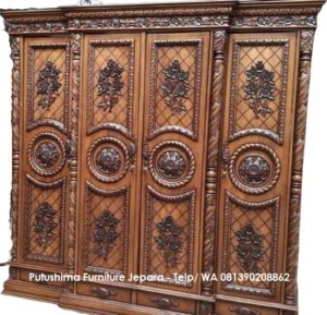 Lemari pakaian Ukir Arjuna Galeri Produk Kombinasi Warna Furniture Natural GoldKombinasi Warna Duco EmasKombinasi Natural Duco