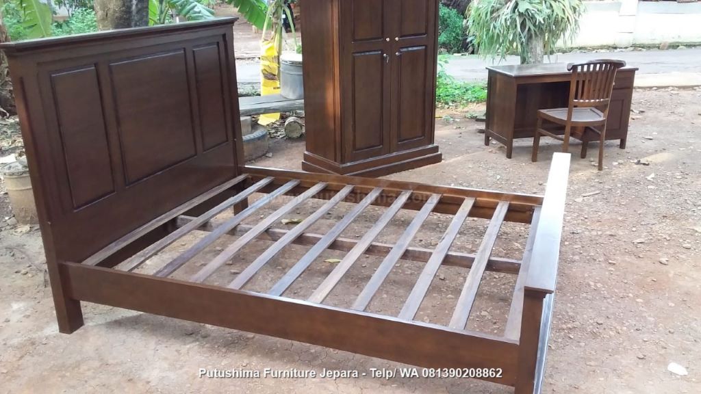 Set Tempat Tidur Jati Lawega merupakan paket furniture kamar sederhana dengan tampilan minimalis cocok untuk kamar anak, kamar kos, maupun kamar utama anda. Paket kamar set jati ini terdiri dari tempat tidur jati ukuran 160×200 serta lemari pakaian 2 pintu dengan ukuran 100×55 tinggi 210 dan tidak ketinggalan meja kerja lengkap dengan kursinya.
