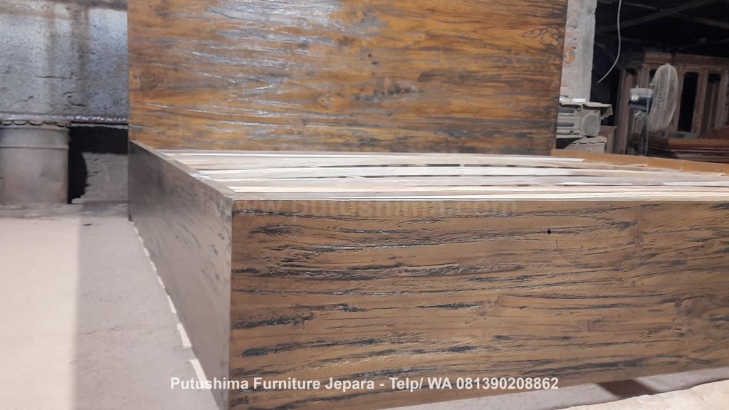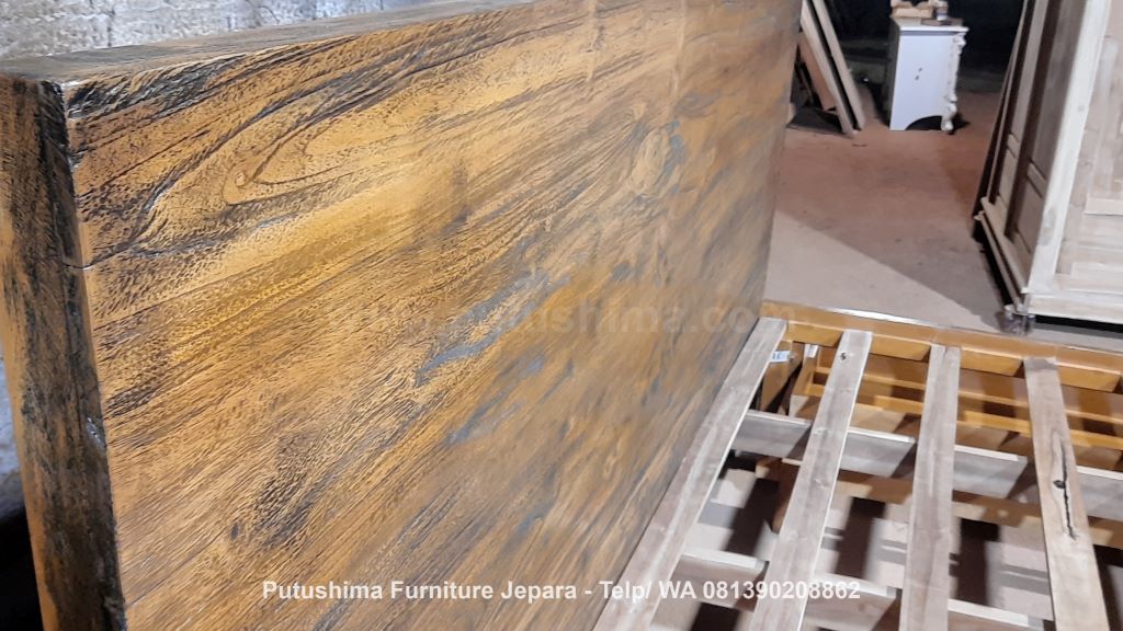 Model tempat tidur ini selain minimalis juga mengusung model finishing rustic dimana mengedepankan serta memunculkan dan menekankan serat kayu jati yang unik sehingga tampak lebih jelas dan estetik. Dan juga terdapat 2 buah laci yang bisa digunakan untuk menyimpan barang berharga milik anda.